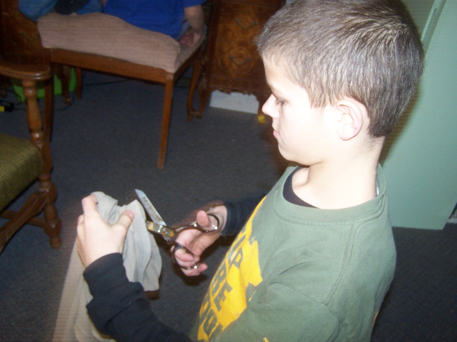 Joshua and I have been busily working on his quilt for these past few days. He wanted to make one with all of his favorite t-shirts from the past several years.